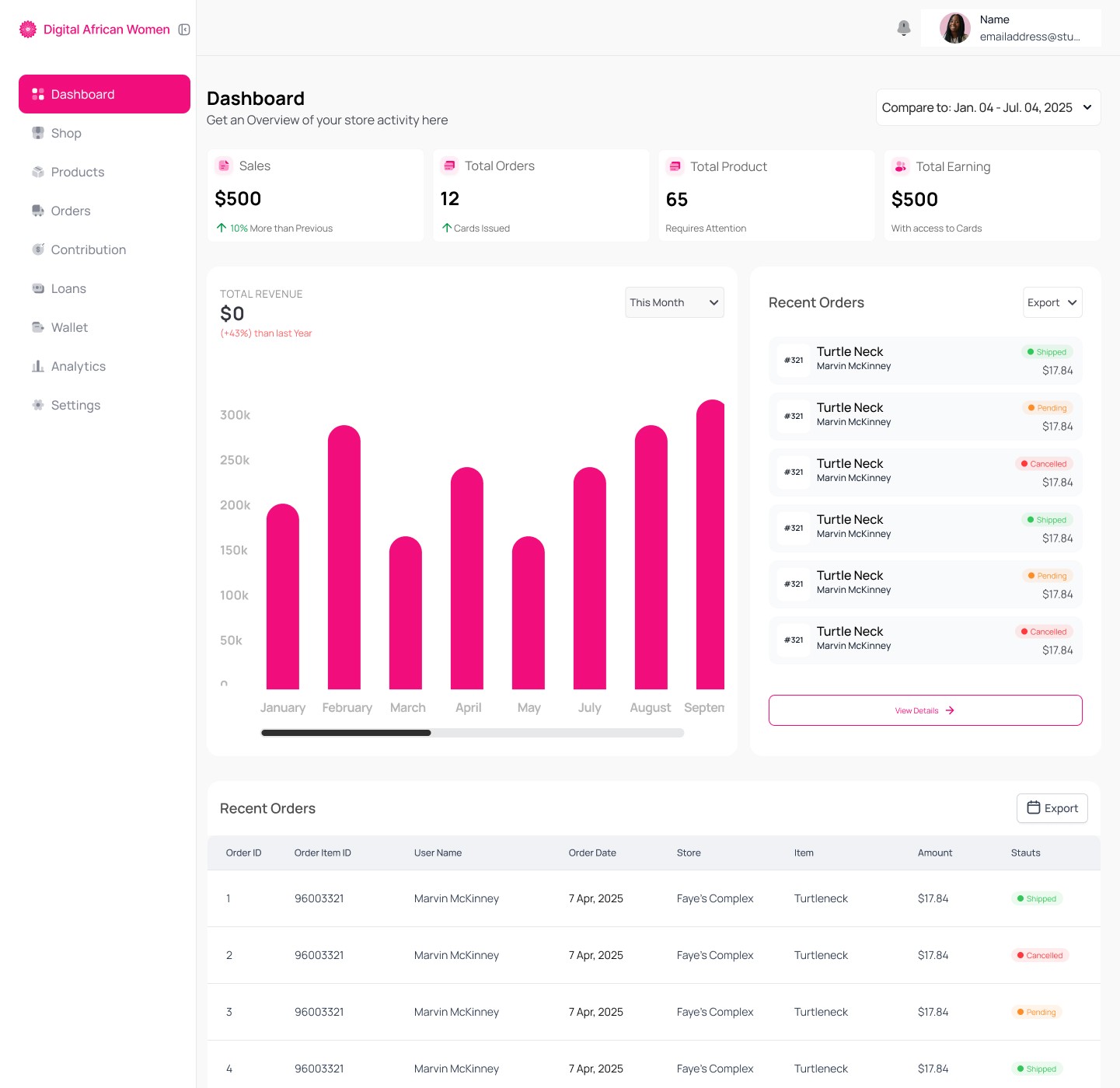 For the Dashboards: To design a multi-user ecosystem with tailored interfaces for Sellers (to manage business), Cooperatives (to source and fund), and Logistics Companies (to handle fulfillment).